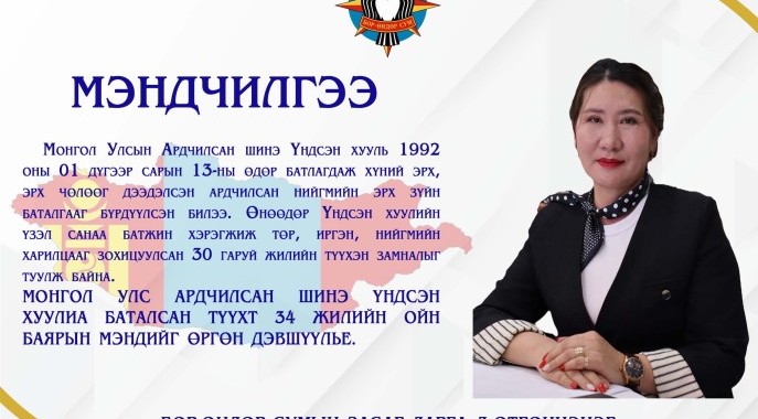 МОНГОЛ УЛС АРДЧИЛСАН ШИНЭ #ҮНДСЭН_ХУУЛИА БАТАЛСАН ТҮҮХТ 34 ЖИЛИЙН ОЙН БАЯРЫН МЭНДИЙГ ӨРГӨН ДЭВШҮҮЛЬЕ