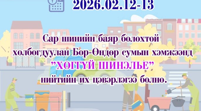 БОР-ӨНДӨР СУМЫН "ЦАГААН САР - ЦАГААН ИДЭЭ 2026" НЭГДСЭН АРГА ХЭМЖЭЭ ЗОХИОН БАЙГУУЛАГДАНА.
