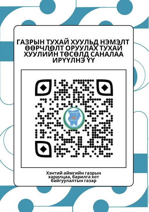 Газрын тухай хуульд нэмэлт өөрчлөлт оруулах саналын төсөлд санал асуулга цаасаар болон QR-аар өгнө үү.