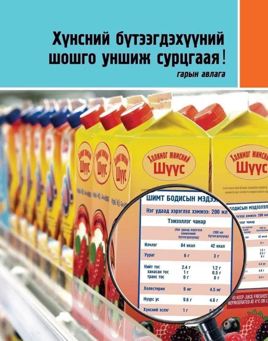 Хүнсний бүтээгдэхүүний шошго уншиж, сонголтоо зөв хийгээрэй.